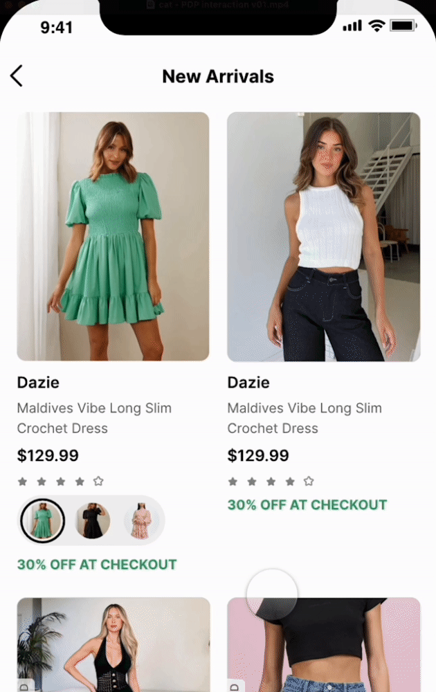 Delivered interaction prototypes (e.g., swipe-down exit, add to bag micro-interactions)